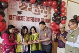 नेपालगन्ज -“मोरिङ्गा फर लभ” अभियान अन्तर्गत नेपालगन्जस्थित ब्रिटिस बोर्डिङ स्कुलमा एक दिने स्वास्थ्य चेतना कार्यक्रम सफलतापूर्वक सम्पन्न भएको छ। कार्यक्रमको मुख्य उद्देश्य विद्यालयका शिक्षक तथा कर्मचारीहरूलाई स्वास्थ्य सम्बन्धी आधारभूत ज्ञान प्रदान गर्नुका साथै आपतकालीन अवस्थामा कसरी प्रभावकारी रूपमा प्रतिक्रिया जनाउने भन्ने सीप विकास गराउनु रहेको थियो। कार्यक्रम अत्यन्तै उपयोगी, अन्तरक्रियात्मक तथा व्यवहारिक रहेको थियो। सहभागी […]