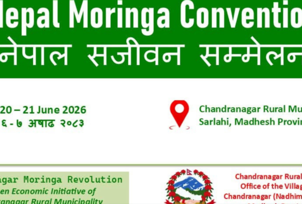 नेपालगन्ज : सर्लाहीको चन्द्रनगर नेपालमा पहिलोपटक “सितलचिनी सम्मेलन तथा मोरिंगा खाद्य महोत्सव २०२६” आयोजना हुने भएको छ। असार ६ र ७, २०८३ मा नाधिमान ताल परिसरमा हुने यस कार्यक्रम चन्द्रनगर गाउँपालिकाको आयोजनामा सञ्चालन हुन लागेको हो। कार्यक्रमको अगुवाइ गाउँपालिका प्रमुख राज कुमार महत्त्व ले गर्नुभएको छ।यो कार्यक्रम स्वास्थ्य, पोषण, वातावरण संरक्षण र स्थानीय आर्थिक समृद्धिलाई […]