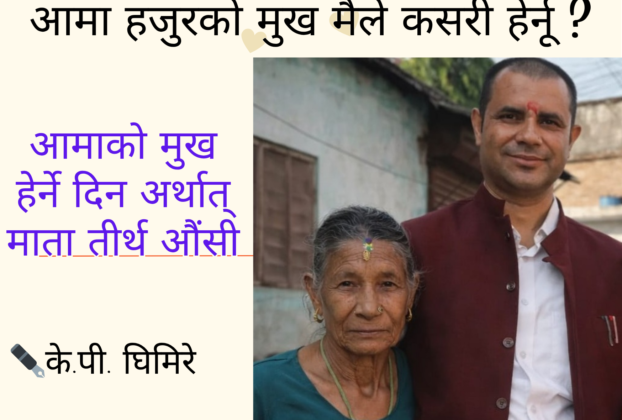 आज माता तिर्थ औंसी अर्थात् आमाको मुख हेर्ने दिन आमा भएका छोराछोरीहरुले आमालाई प्रत्यक्ष रुपमा भेटेर वा टाढा टाढा भएका छोराछोरीहरुले फोन मार्फत कुराकानी गरेर शुभकामना आदानप्रदान गरिरहेका छन् । तर म अभागी भने बिहानैदेखि आमाको सम्झनामा दु:खी हुदै अरुले आमालाई मीठो मीठो परिकार खुवाएको , राम्रा राम्रा कपडा किनेर दिएको फोटो सामाजिक सञ्जालमा हेरेर […]
